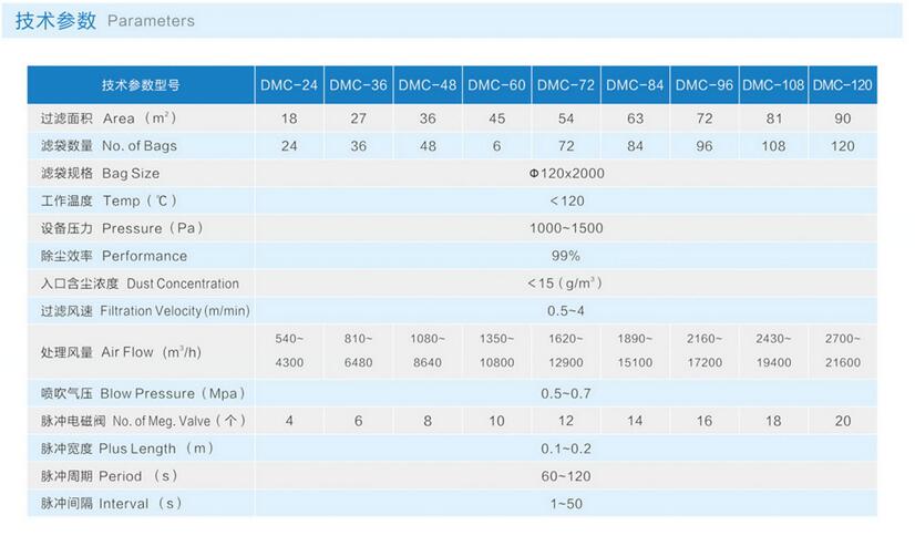 DMC型(xing)脈沖袋式(shi)倉頂除塵(chen)器适宜布(bu)置在各種(zhong)粉料貯存(cun)庫的頂👌部(bu),用于過濾(lü)含塵氣體(ti)。DMC型脈沖袋(dai)式倉頂除(chu)塵器主要(yao)技術參數(shu)見表。在選(xuan)型時應注(zhu)意入口粉(fen)塵濃🧑🏾‍🎄度,在(zai)技術性能(neng)上,透過濾(lü)袋